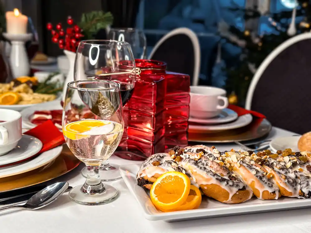 Spędź miły czas z rodziną i bliskimi bez martwienia się o jedzenie. Pozwól nam zająć się Wami w te święta! Będzie na Was czekał obfity bufet w godzinach 16:00 – 20:00 z tradycyjnymi potrawami, przekąskami, pysznymi daniami ciepłymi, deserami i napojami ciepłymi i zimnymi.